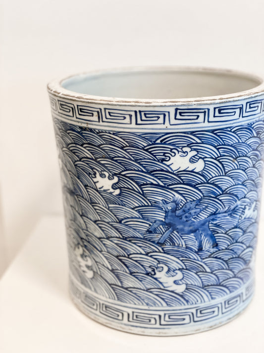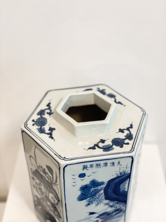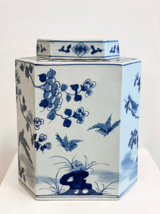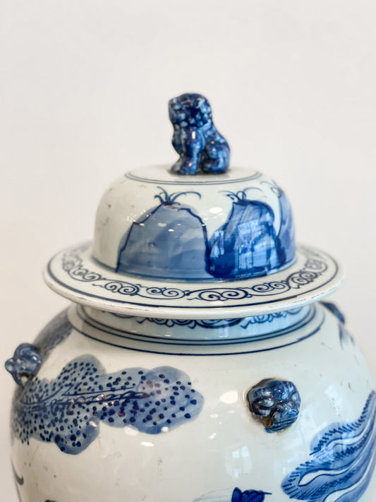 Vintage Blue & White Garden Pheasant Lidded Jar