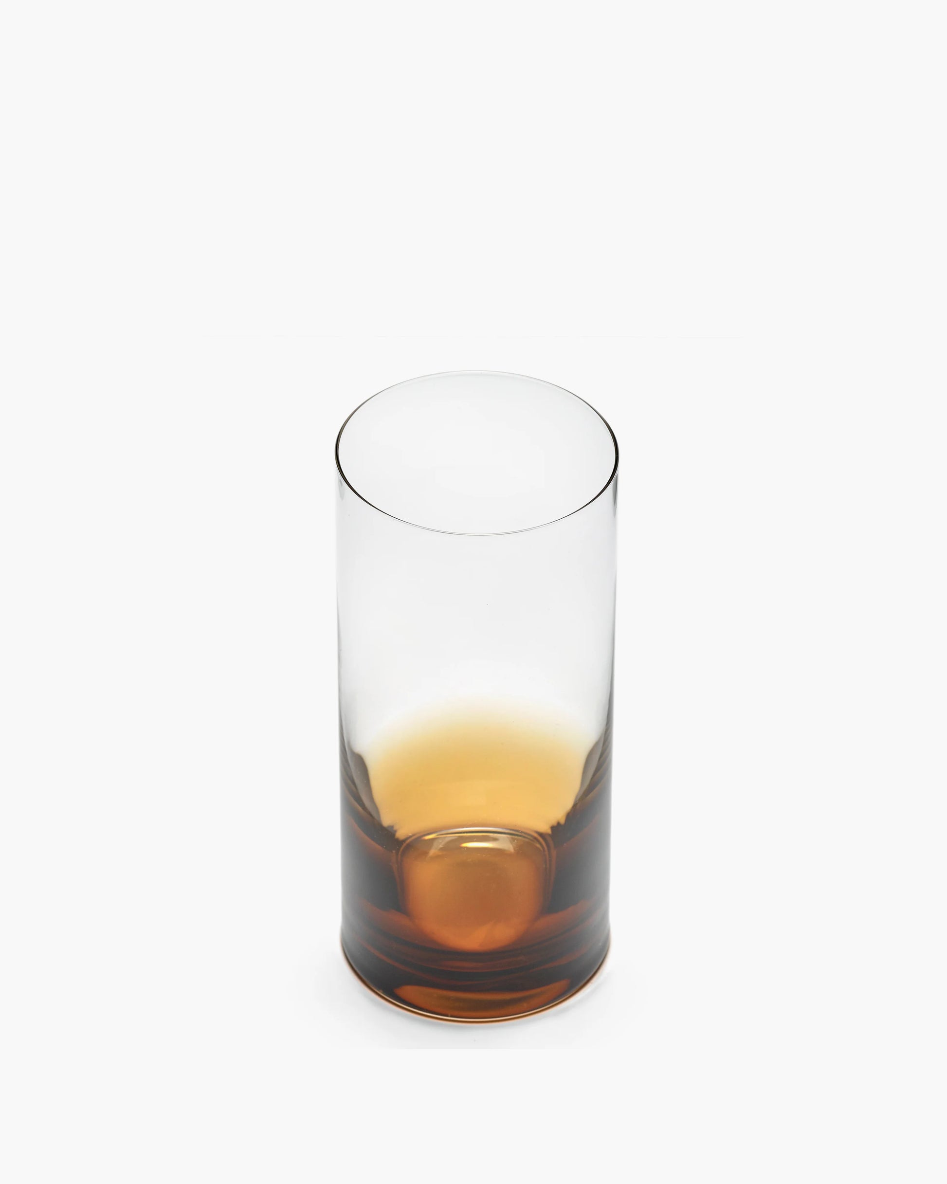 Discover the harmony between art and functionality with Kelly Wearstler's Zuma glass collection. With dimensional patterns and rich amber tones, these long drink glasses add refinement to any table setting. Designed by Kelly Wearstler for Serax
