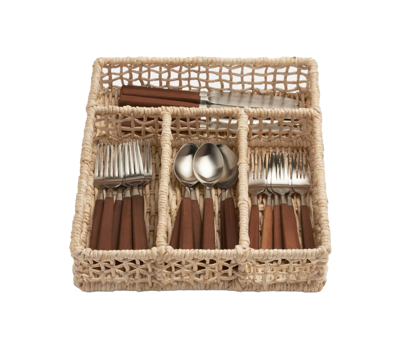 A super-loose weave puts a stylish spin on our Ericson collection of tabletop organizers, handmade from twisted and bleached banana-bark rope.