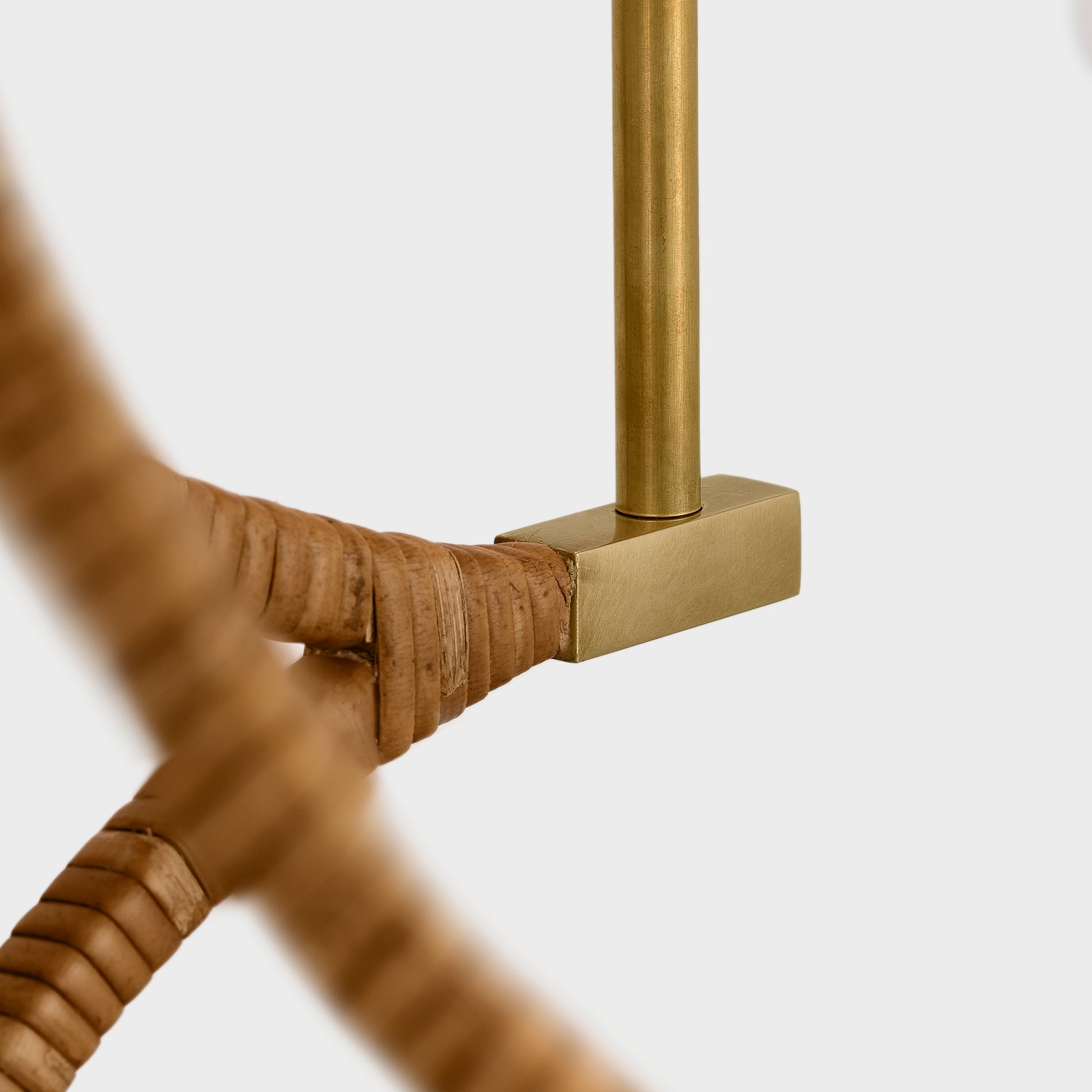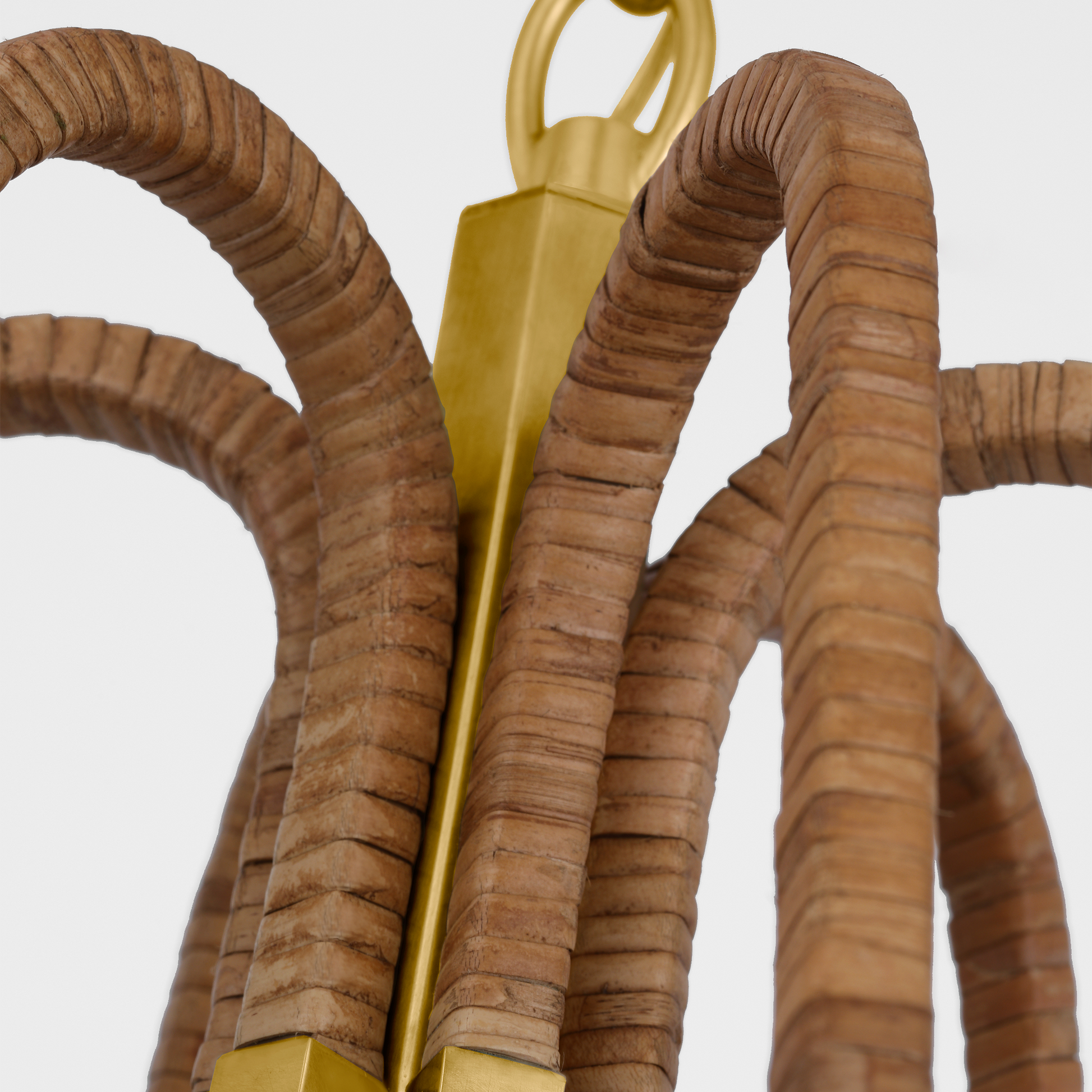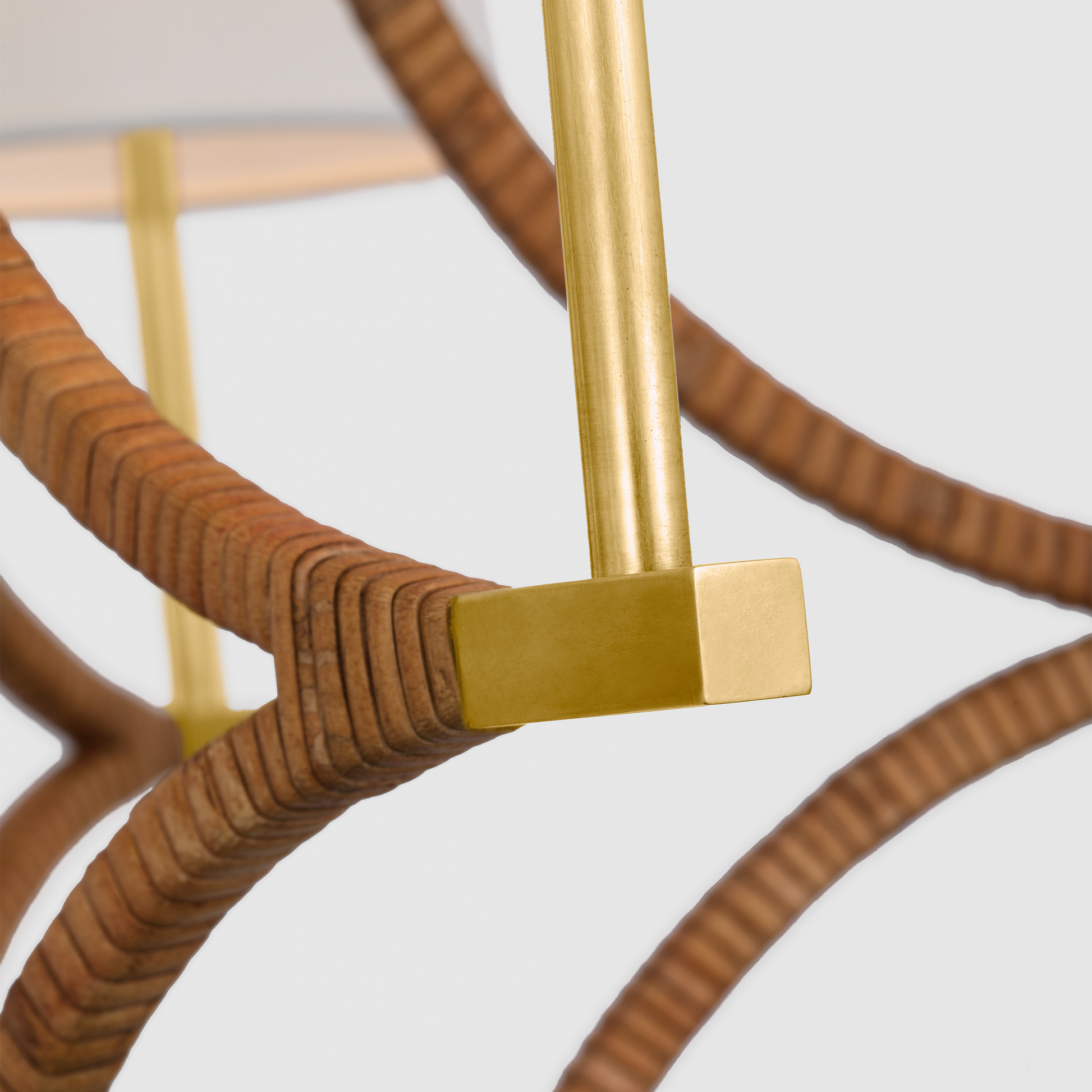 Biscayne Large Wrapped Chandelier in Antique-Burnished Brass and Natural Rattan with Linen Shades