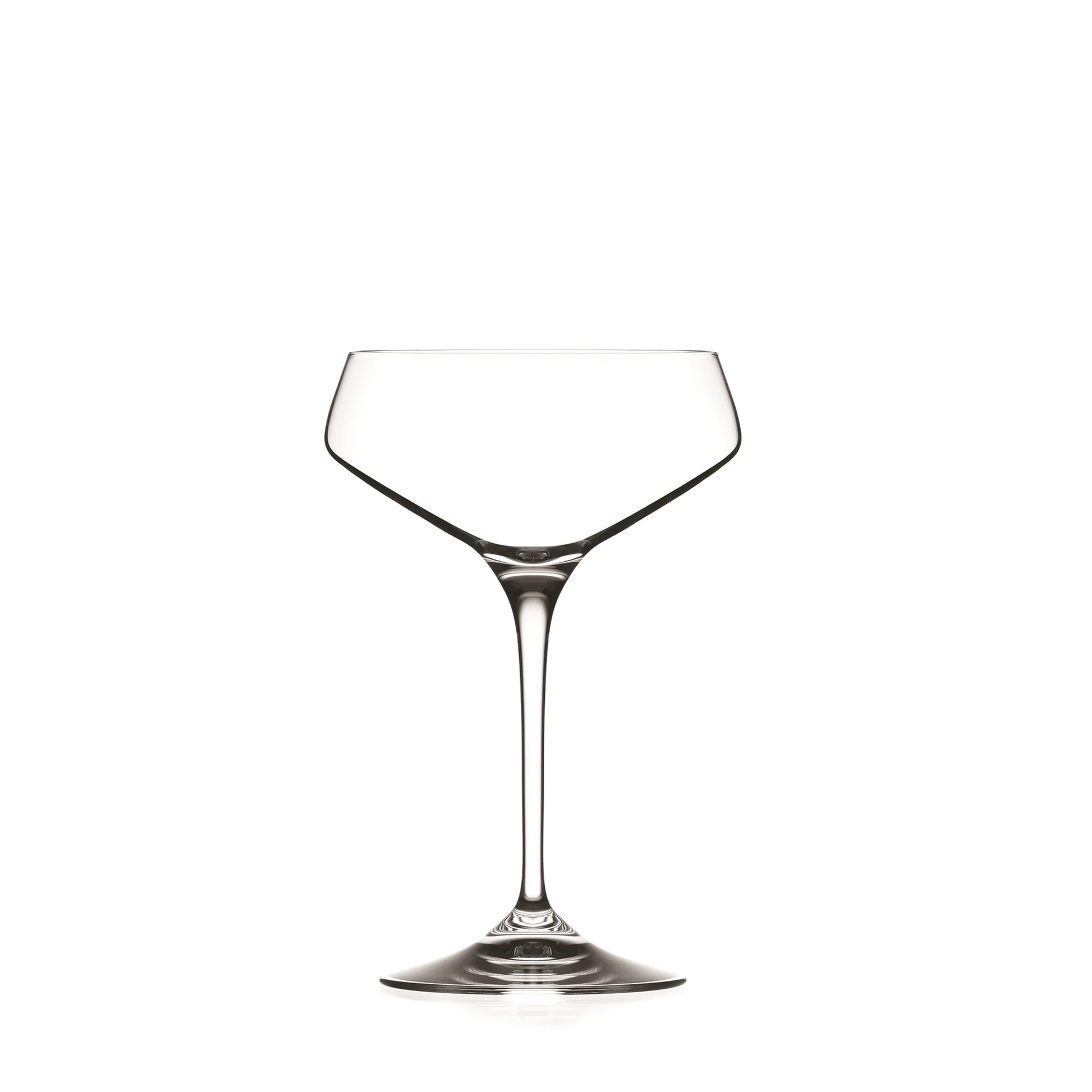The pinnacle of Italian design, created in Tuscany for the finest table settings, whether at home or on premise. Perfectly brilliant & transparent, with acoustic sonority similar to the best quality lead crystal. Modern mixologists have reimagined the classic champagne coupe as a vessel to present visually stunning and refined cocktails.