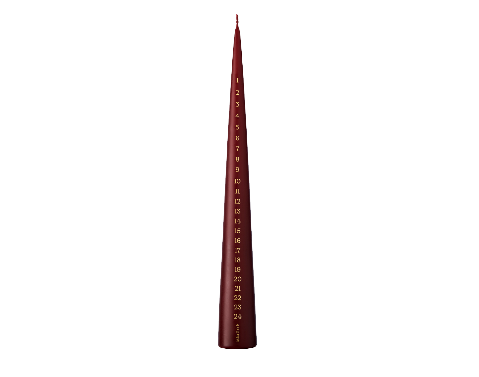 Calendar candles are for many people a fixed tradition in December where you feel the coziness at home. The tradition relates to a lot of joy, and with butterflies in the stomach you count the days till Christmas eve. With its classic shape, it is elegant on its own, or example a piece of glass or a piece of marble – anything is possible, because no candle holder is required.