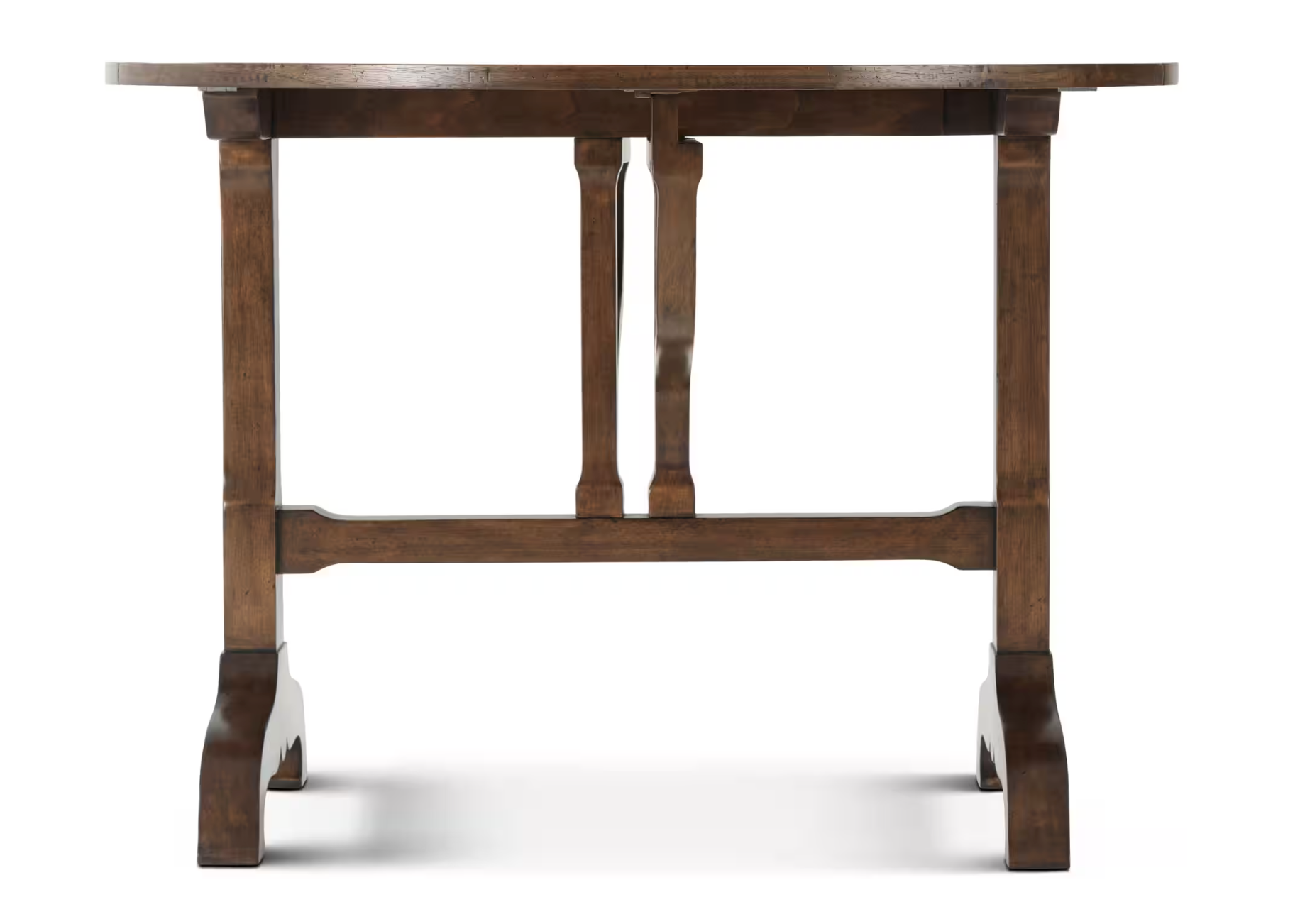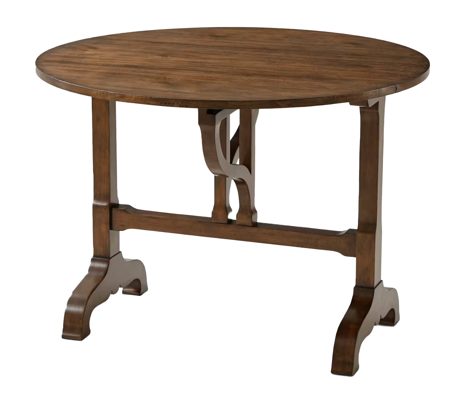 Beech with Knotty Walnut Veneer with circular Drop Leaf Top with Stirrup Leaf Supports
