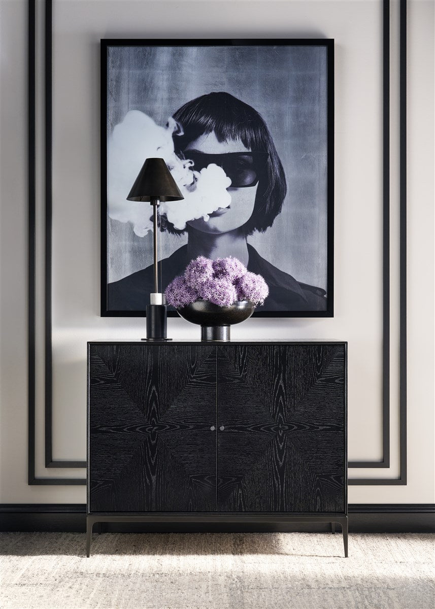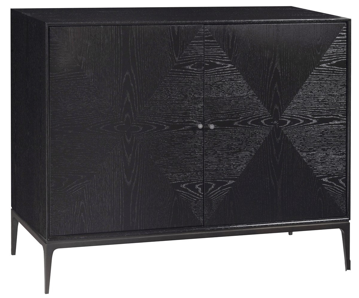 Features: Wire Brushed Oak, Two Doors, Metal Base and Hardware in Heirloom Bronze