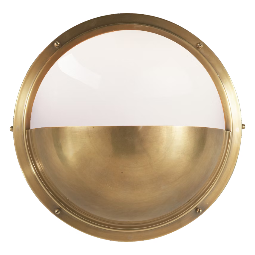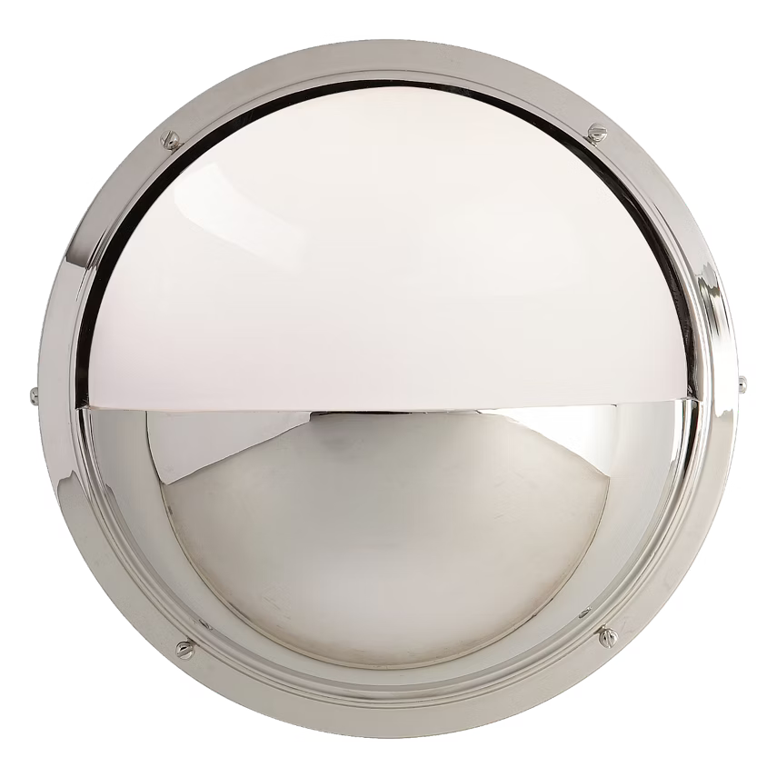 Pelham Moon Light by Thomas O’Brien from the Visual Comfort Signature Collection is a compact yet striking wall sconce, showcasing a half-moon structure with a soft, glowing white glass—perfect for adding a subtle sculptural touch to hallways, baths, or outdoor areas.