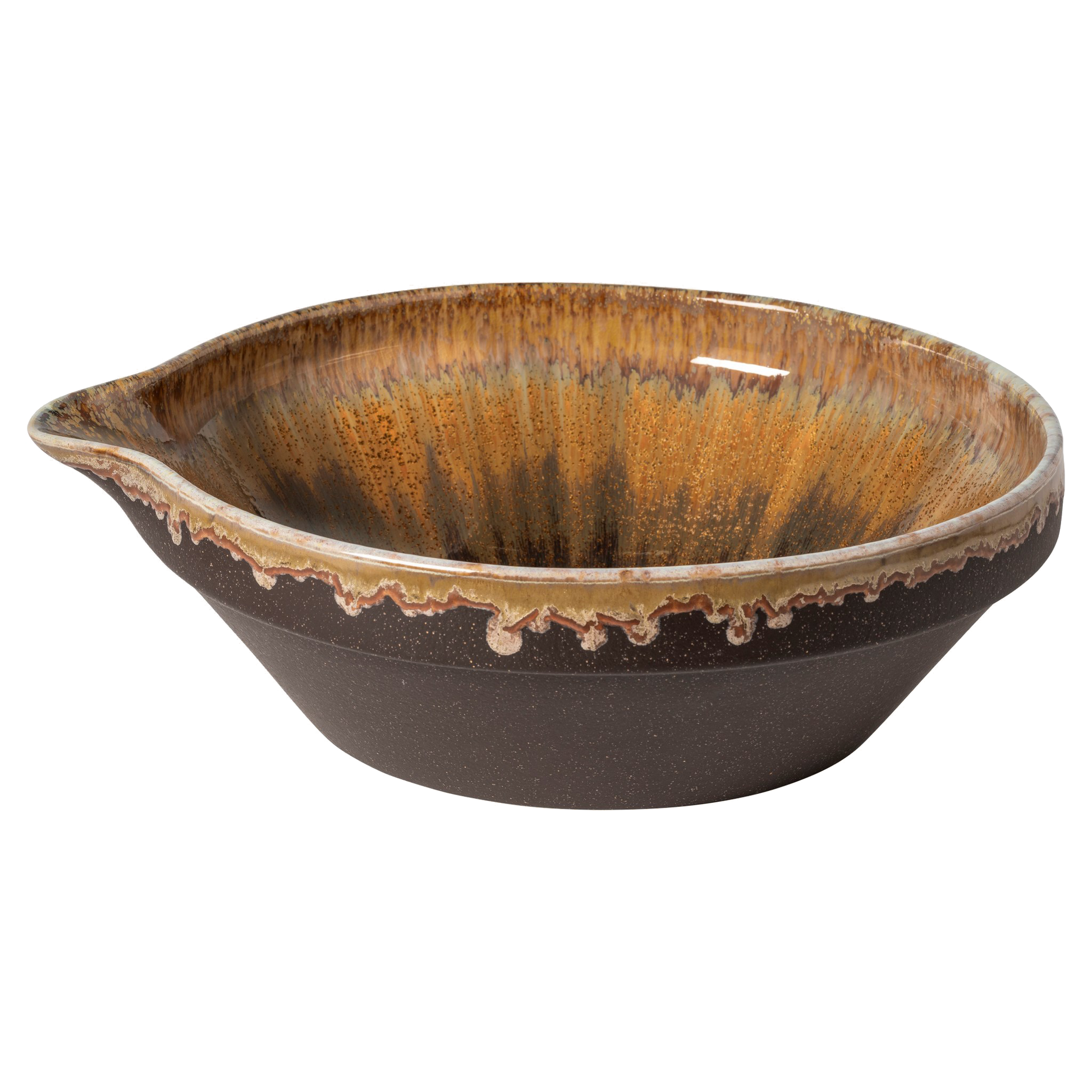 Vintage mixing bowls showcase a spectacular reactive glaze on the interior, contrasting with a darker, matte glaze on the exterior. Single fired at up to 1180°C to create a unique ceramic body with a special bonding between the clay and the glazed surface, resulting in a more durable product. Freezer, oven, microwave and dishwasher safe. All collections are hand-finished. Any irregularities, color variations or small imperfections should be considered as unique marks of authenticity. Sustainable production using local resources and environmentally friendly facilities